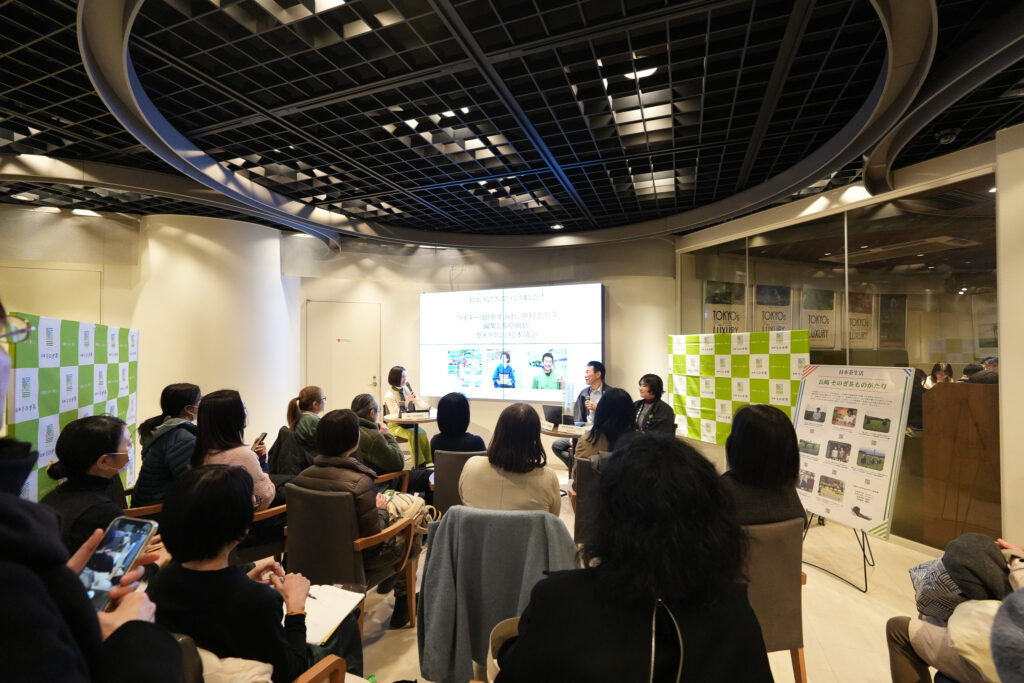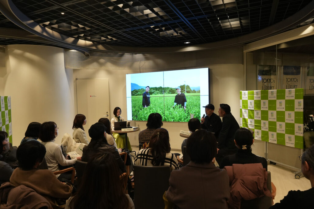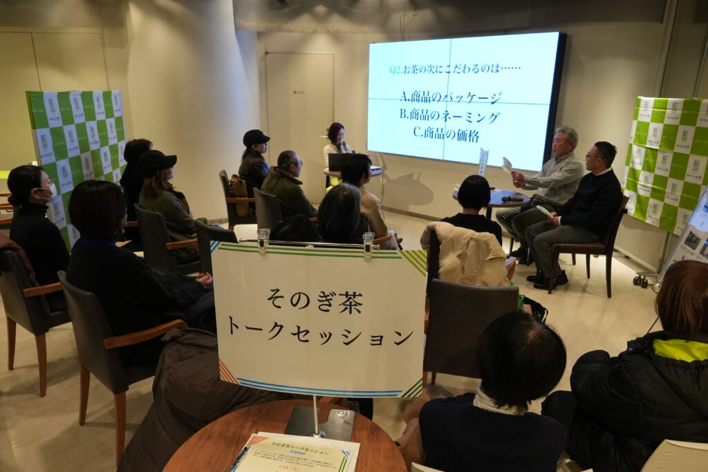 また、販売だけでなく、今回はそのぎ茶を心ゆくまで楽しんでいただけるようなブースもご用意しました。こちらはトークセッションのブース。生産者さん2人一組で、それぞれお茶作りのこだわりや、生産者としてのホンネをお聞きしました。